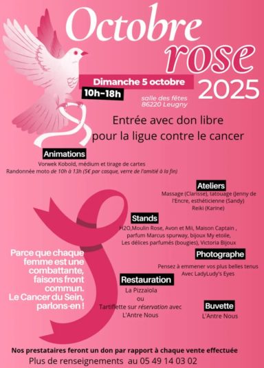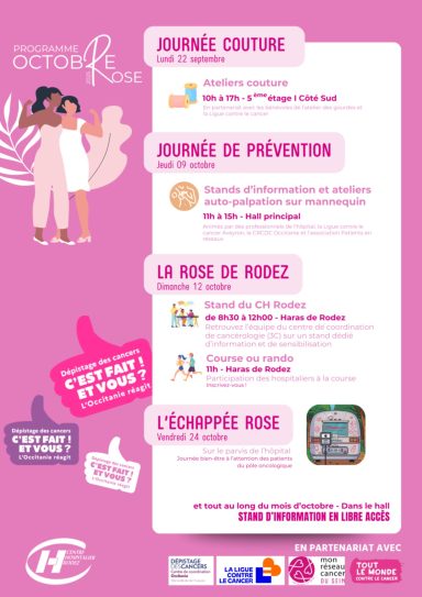 C’est le début du mois d’octobre marquant également le début de la mise en avant de la prévention contre le cancer du sein. Comme chaque année, de nombreuses activités tout au long de ce mois sont organisées : marche, course, ateliers de relaxation et bien-être, etc.